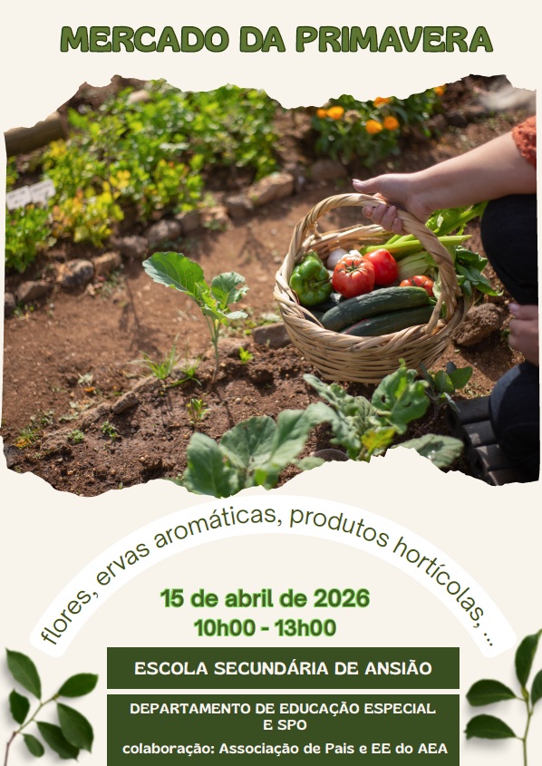 No âmbito do Plano de Atividades do Departamento de Educação Especial, no dia 15 de abril, decorreu a atividade Mercado da Primavera. A escola sede acolheu, mais uma vez, os alunos do pré-escolar e da EB1 de Ansião, que participaram no mercado, apreciando as flores, os produtos hortícolas e os vasos decorativos, elaborados pelos alunos das várias SRE (Salas de Recursos Especializados), quer de Ensino Estruturado, quer de Apoio Especializado a Alunos com Multideficiência. Os alunos visitantes tiveram, ainda, a oportunidade de praticar a gestão financeira e fomentar o gosto pelas plantas. A atividade teve também a colaboração do SPO (Serviço de Psicologia e Orientação) e da APA (Associação de Pais e Encarregados de Educação dos Alunos do Agrupamento de Ansião).
